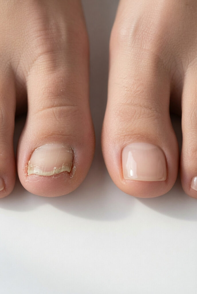 4. Nicht zu kurz kürzen Lass einen winzigen weißen Rand stehen (ca. 1–2 mm über der Zehenkuppe). Das schützt den Nagel und verhindert, dass er zu empfindlich wird.